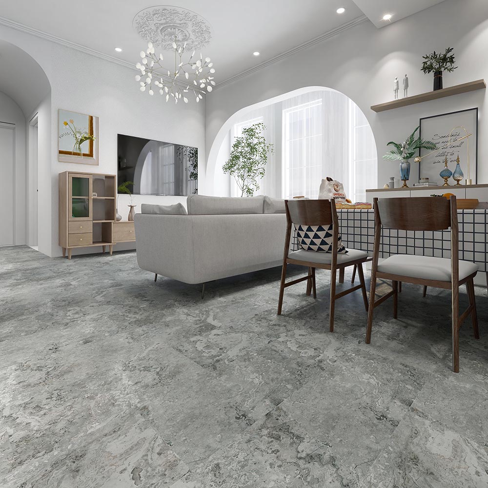 Marble design rigid core flooring is widely used for dining room, kitchen and restaurant, because of its 100% waterproof and anti-slip, it’s safe to use in wide applications. With the Uniclick locking system, it’s glueless and floating, which make it easy to install and not require glue or complicated tools. Do-It-Yourself (DIY) enjoy it so much. People can install any pattern as they want. This flooring tile is available in size of 12” x 24” (305mm x 610mm), 18”x24” (457mm x 610) and large size 18 1/2”x 36 1/2” (470mm x 925mm), which makes it looking almost no difference from natural luxury marble tile. The surface could be embossed flat. If people want to get a soft foot feeling, it can also be pre-attached with a shock pad on the back of the tile. Shock pad thickness is from 1.0mm to 2.0mm. The total tile thickness is from 4.5mm to 9mm.