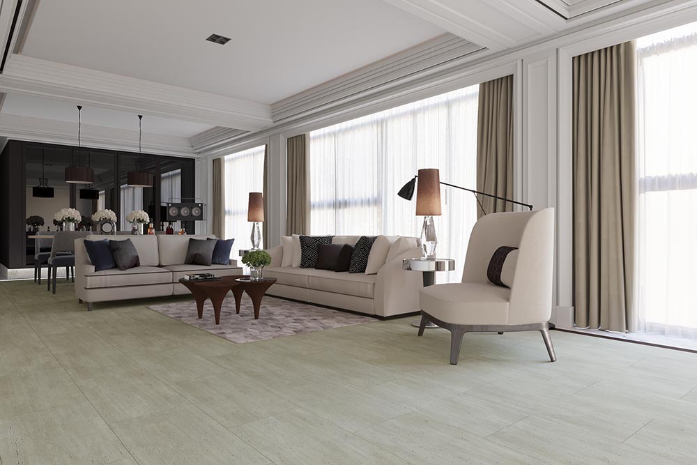 Texture is key in Europe. Unlike North America’s love for smooth finishes, European SPC often features “embossed-in-register” (EIR) textures, where the pattern’s grain or veining matches the surface feel—so a stone-look plank actually feels like stone underfoot.